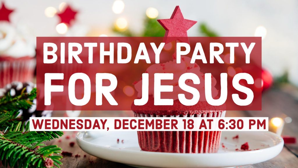 Our Kids Club is celebrating Christmas with a Birthday Party for Jesus on Wednesday, December 18 at 6:30 pm. Join us for cupcakes and ice cream! 4 yrs – 5th grade.