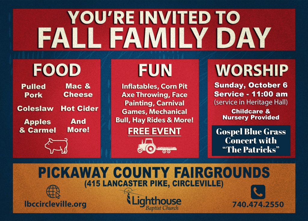 If you would like to serve at this year’s Fall Family Day please sign up at the welcome center today. T-shirt deadline is Sunday, September 8. We will have two volunteer meetings (September 15 and 29). We will walkthrough and set up for the event on Saturday, October 5 at 3:00 pm.