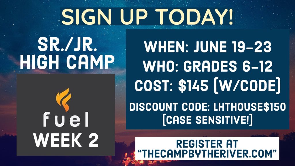 Pick up a Fuel Camp packet at the welcome center today! Grades 6-12. Cost – $145 (w/code). Discount code: LHTHOUSE$150 (case sensitive). Register at thecampbytheriver.com