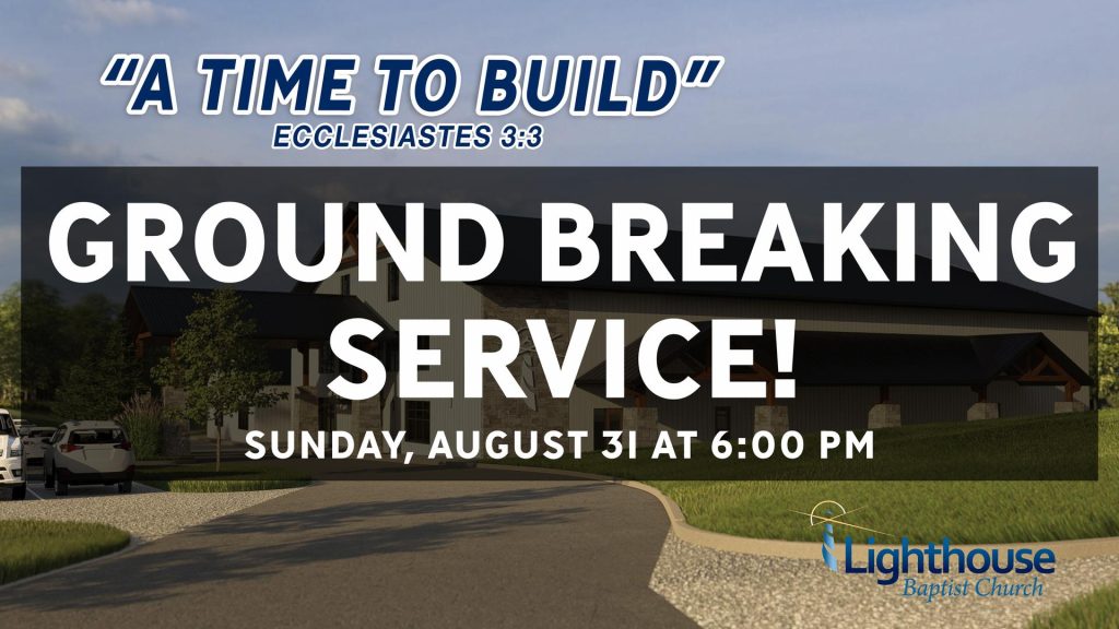 We officially have a start date on the construction of our new building! To celebrate, we will have a Ground Breaking Service this Sunday evening at 6:00 pm. Come and celebrate the Lord’s goodness! Nursery and Jr. Church provided.