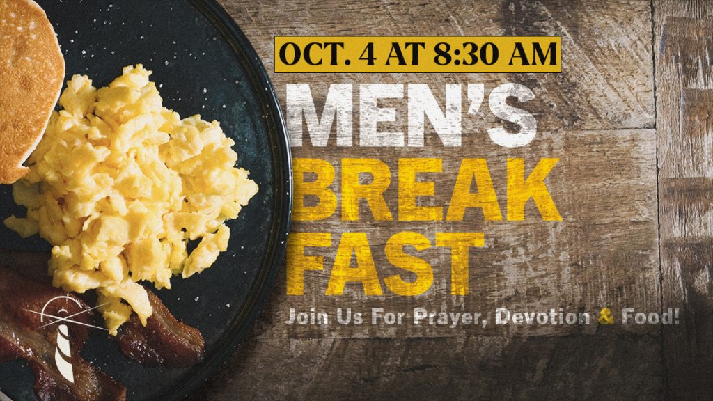 Our next Men’s Prayer Breakfast is October 4 at 8:30 am! Join us for hot breakfast, devotion, and prayer. All men are welcome.