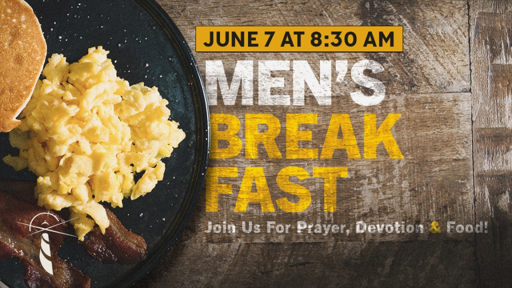 Men, join us for prayer, devotion, and good food! Saturday, Jun 7 at 8:30 am. This will be our last men’s prayer breakfast until September.