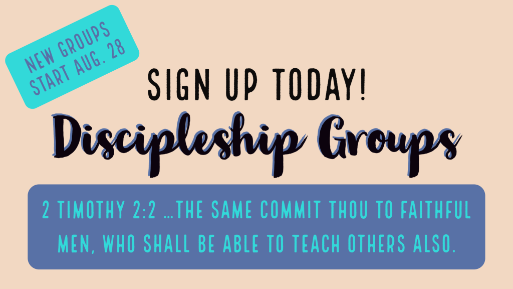 Our next round of Discipleship Groups are beginning on Wednesday, August 28 at 6:30 pm. Get signed up at the welcome center today!