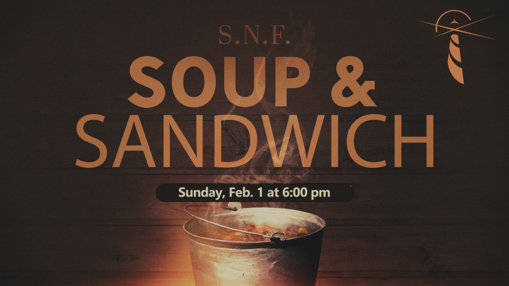 Our next S.N.F. is this Sunday, February 1 at 6:00 pm! Bring your favorite soup to share with your church family! Church will provide the sandwiches and drinks.