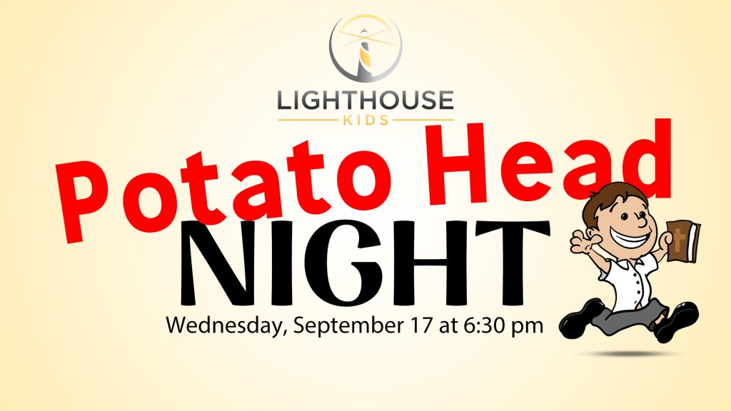 It’s Potato Head Night in Kids Club! Decorate a potato to bring with you on Wednesday, September 17 at 6:30 pm. 4 years – 5th grade.