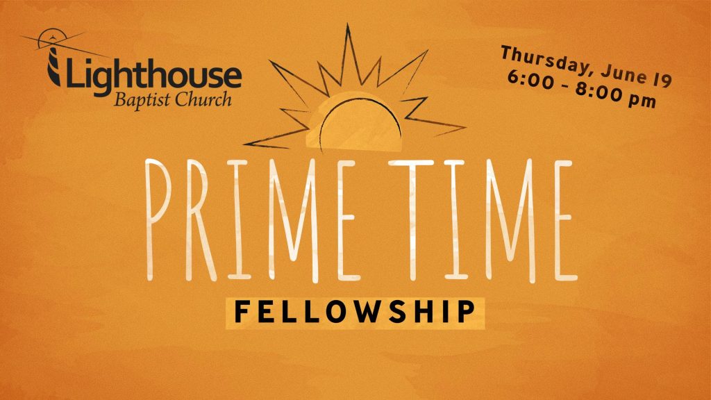Our next Prime Time Fellowship will be on Thursday, June 19. Fellowship will take place at the church from 6:00-8:00 pm. This will be a potluck. Please bring a dish to share.