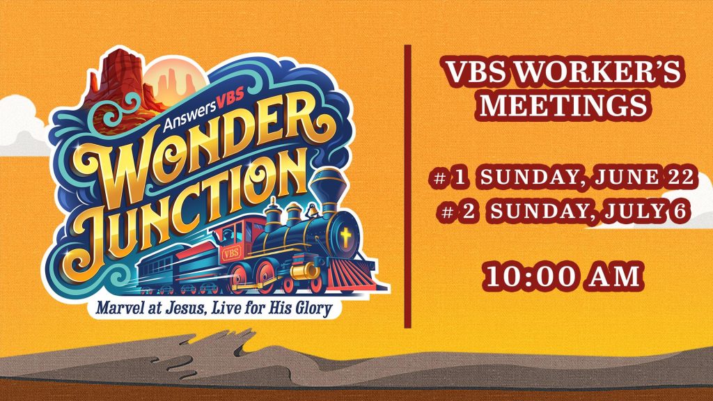If you would like to help at Vacation Bible School this year, please sign up at the welcome center. There will be two workers’ meetings. Sunday, June 22 and Sunday, July 6. Both meetings are at 10:00 am.